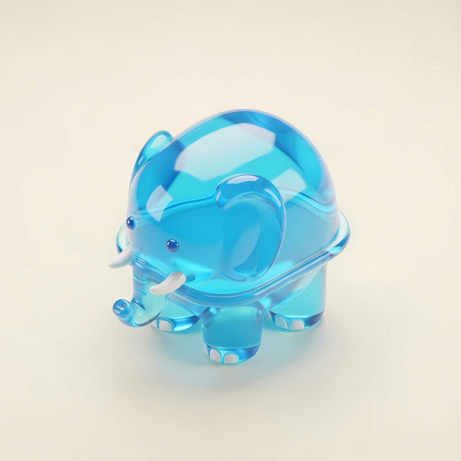A glossy, translucent blue elephant figurine with a modern design, set against a soft neutral background.