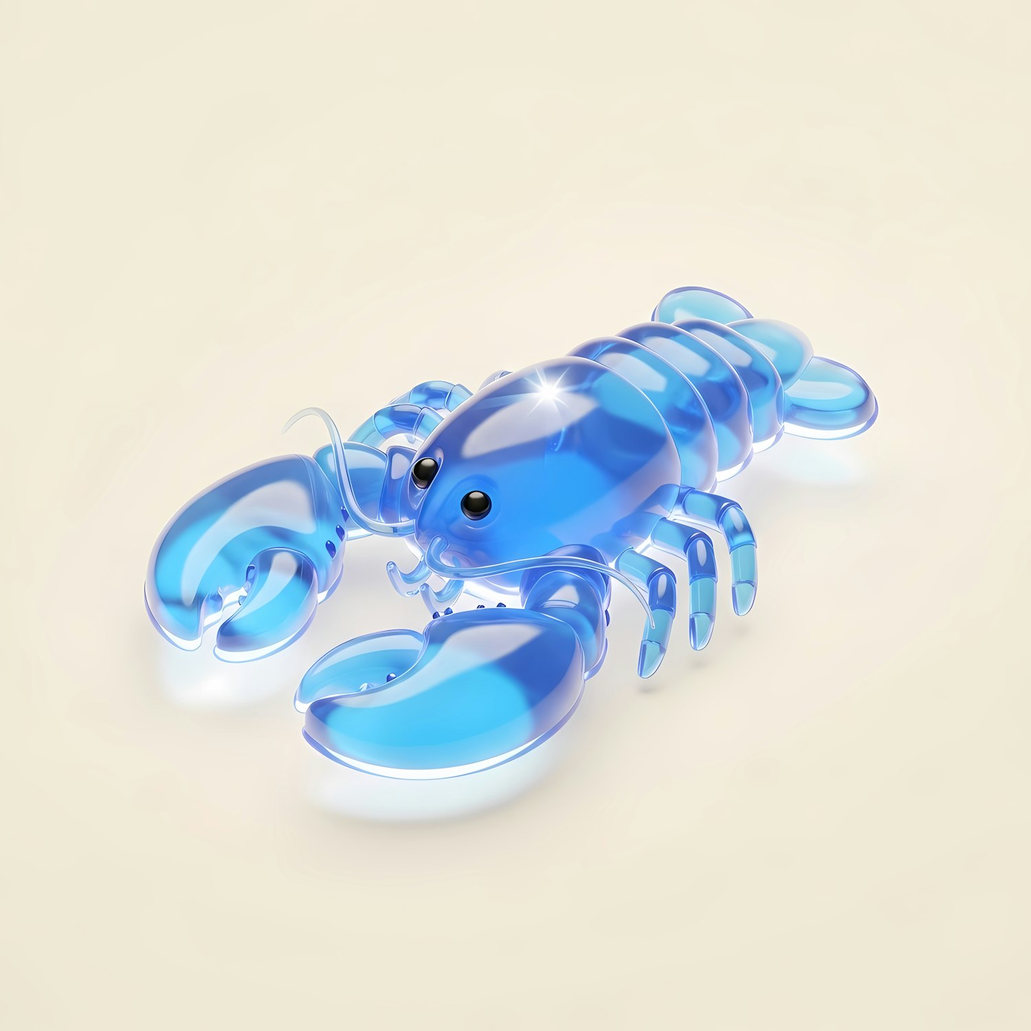 A stunning 3D-rendered translucent blue lobster with a glossy finish, showcasing intricate details and a luminous effect.