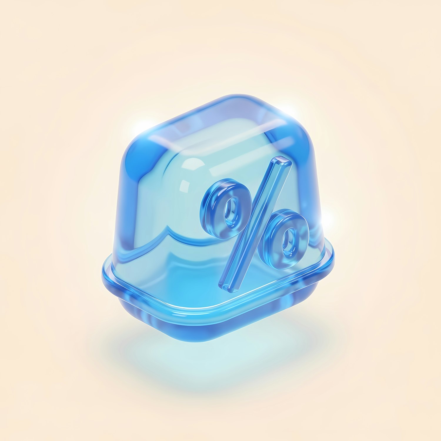 3D-rendered translucent blue container with a percentage symbol, set against a soft beige gradient background.