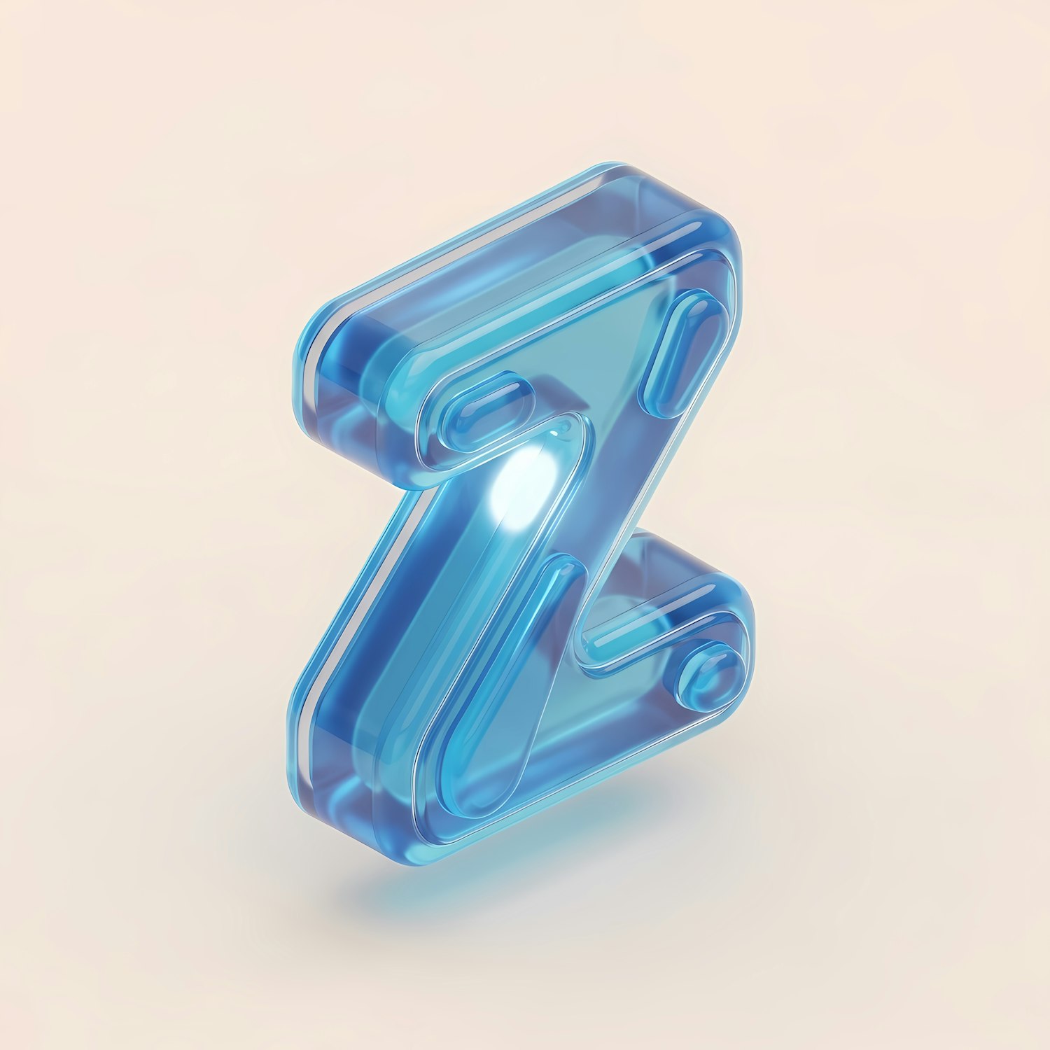 A 3D-rendered translucent blue letter 'Z' with a glossy finish, set against a soft beige background, showcasing a modern design.