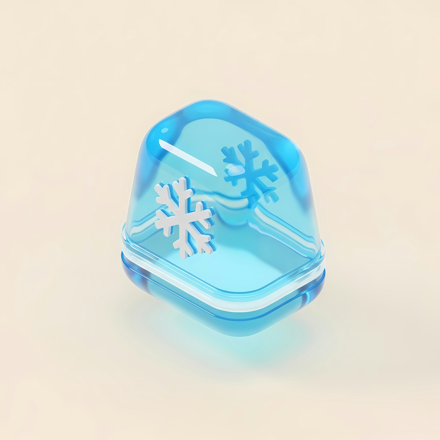 A 3D-rendered translucent blue capsule with a snowflake design, set against a soft beige background, showcasing a clean and modern aesthetic.