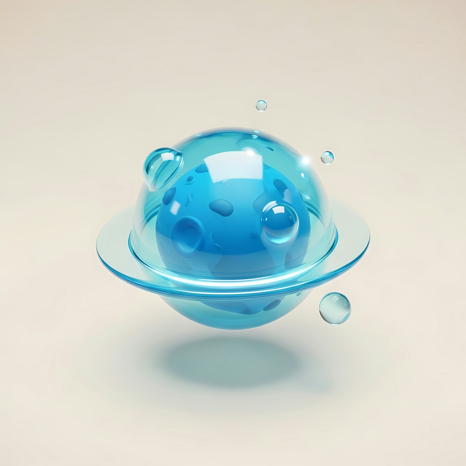 A stunning 3D-rendered blue sphere with a ring, resembling a planet, floating against a soft beige background.