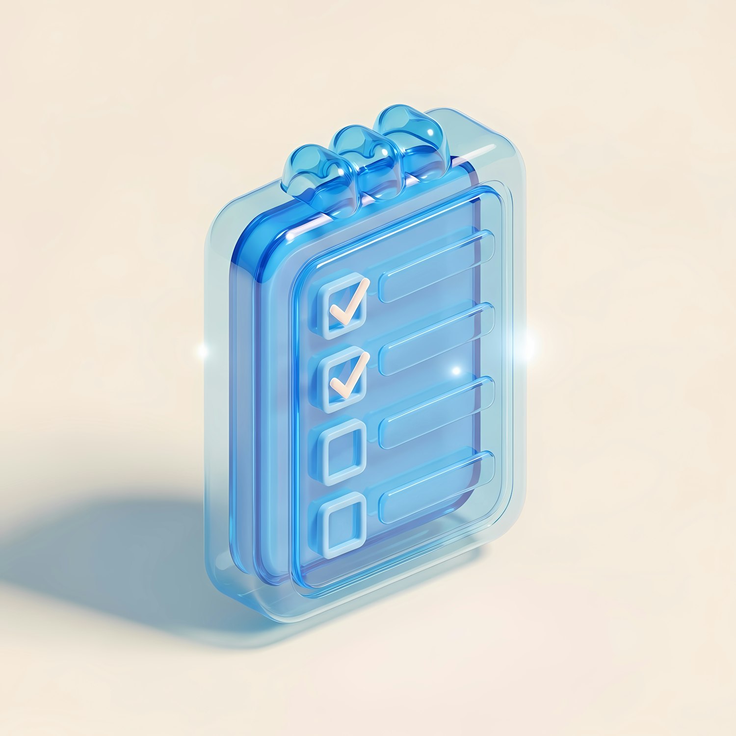 3D illustration of a glossy blue checklist icon with marked checkboxes, perfect for productivity or task management themes.