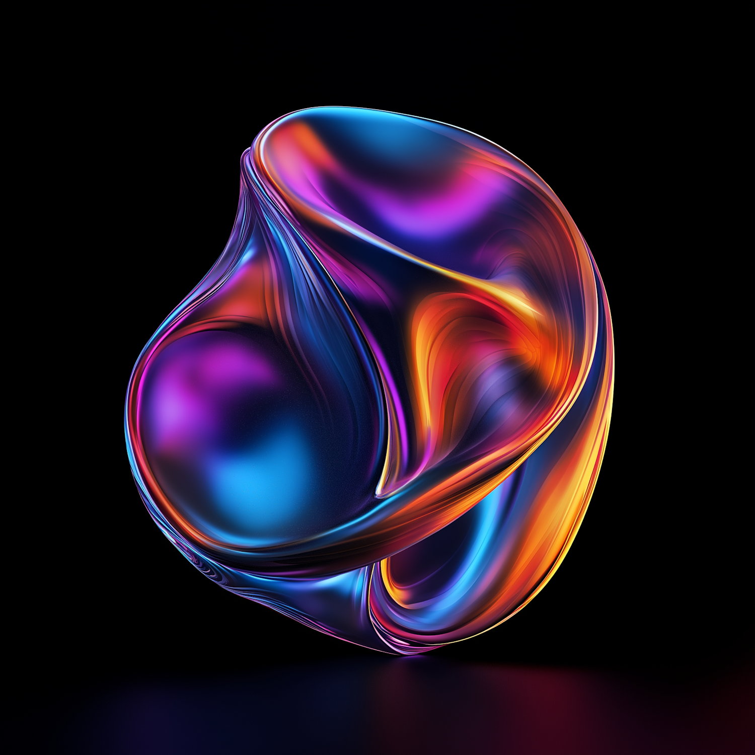 Vibrant 3D abstract shape with glowing blue, orange, and pink hues on a black background. Perfect for modern, artistic visuals.