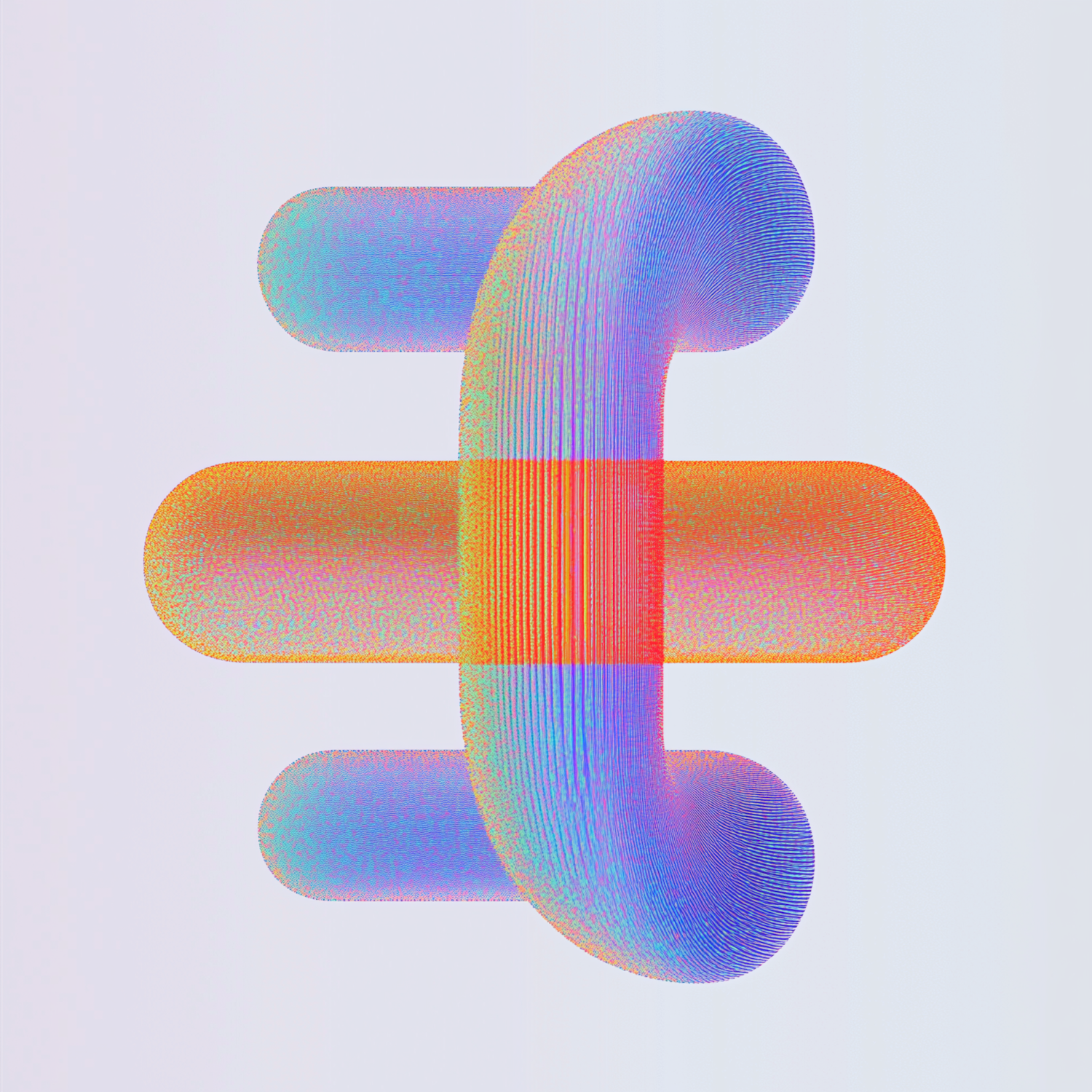 Abstract digital art with intersecting colorful cylinders in orange, blue, and purple gradients, creating a modern and dynamic 3D effect.