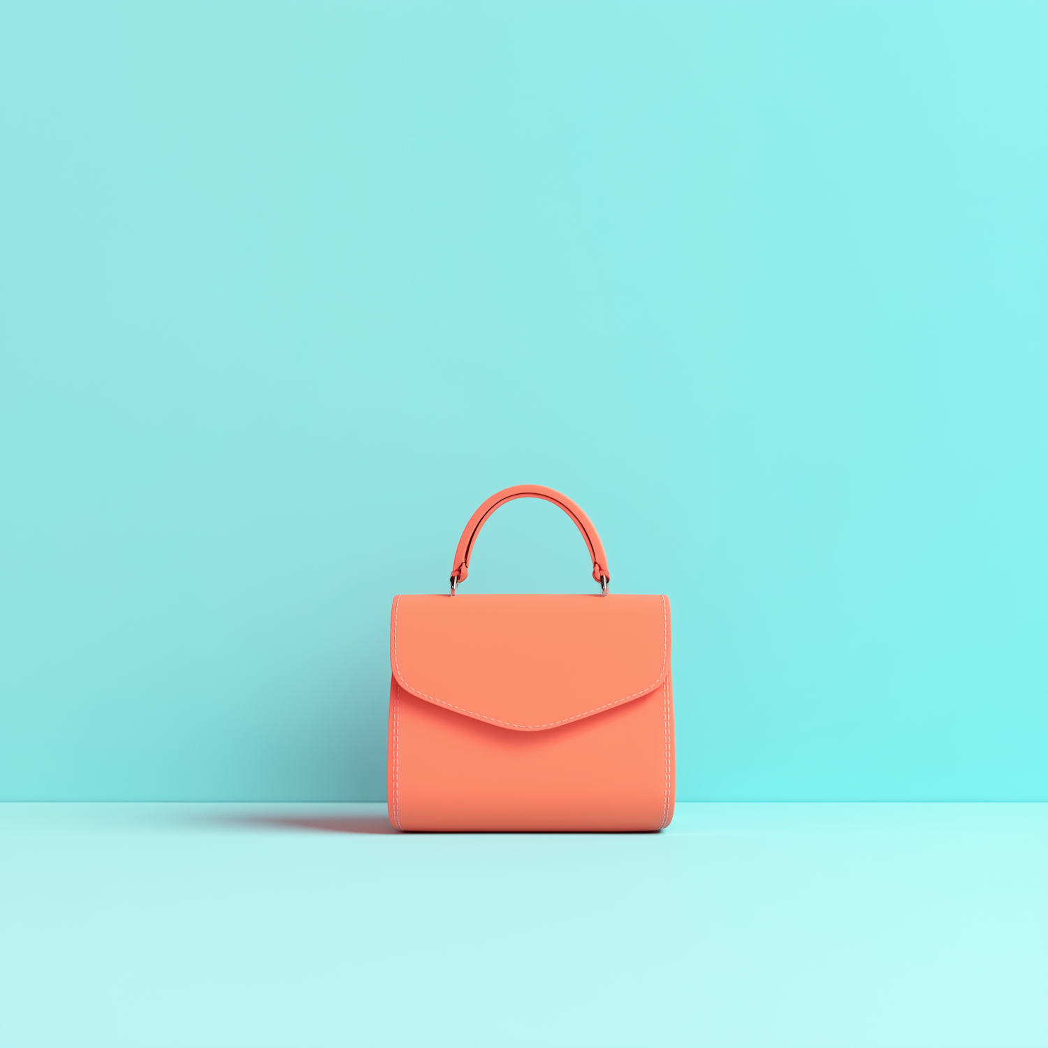 Vibrant orange handbag against a light blue background, showcasing bold color contrast and minimalistic design.
