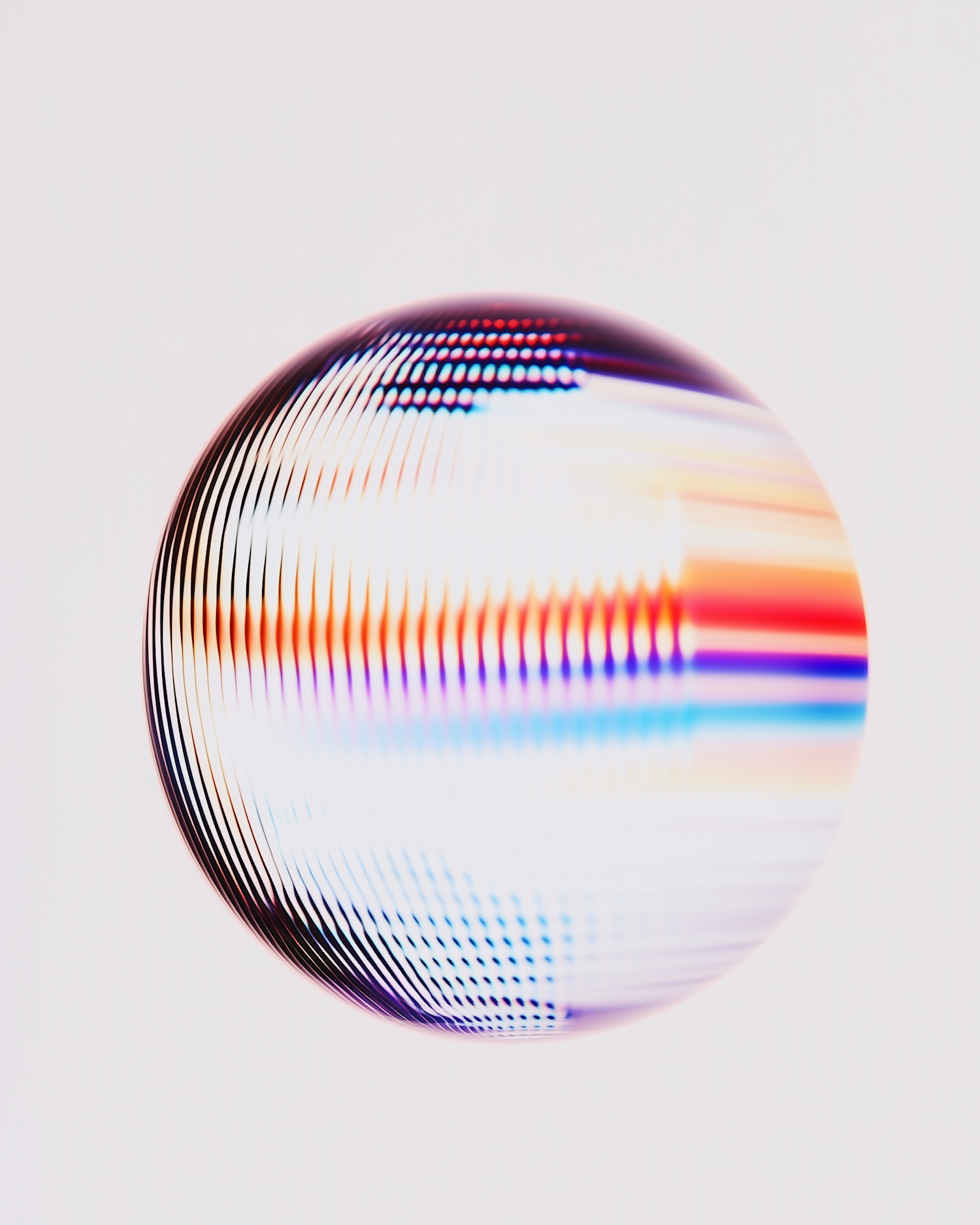 Abstract sphere with colorful rippling lines on a light background, creating a vibrant and dynamic visual effect.