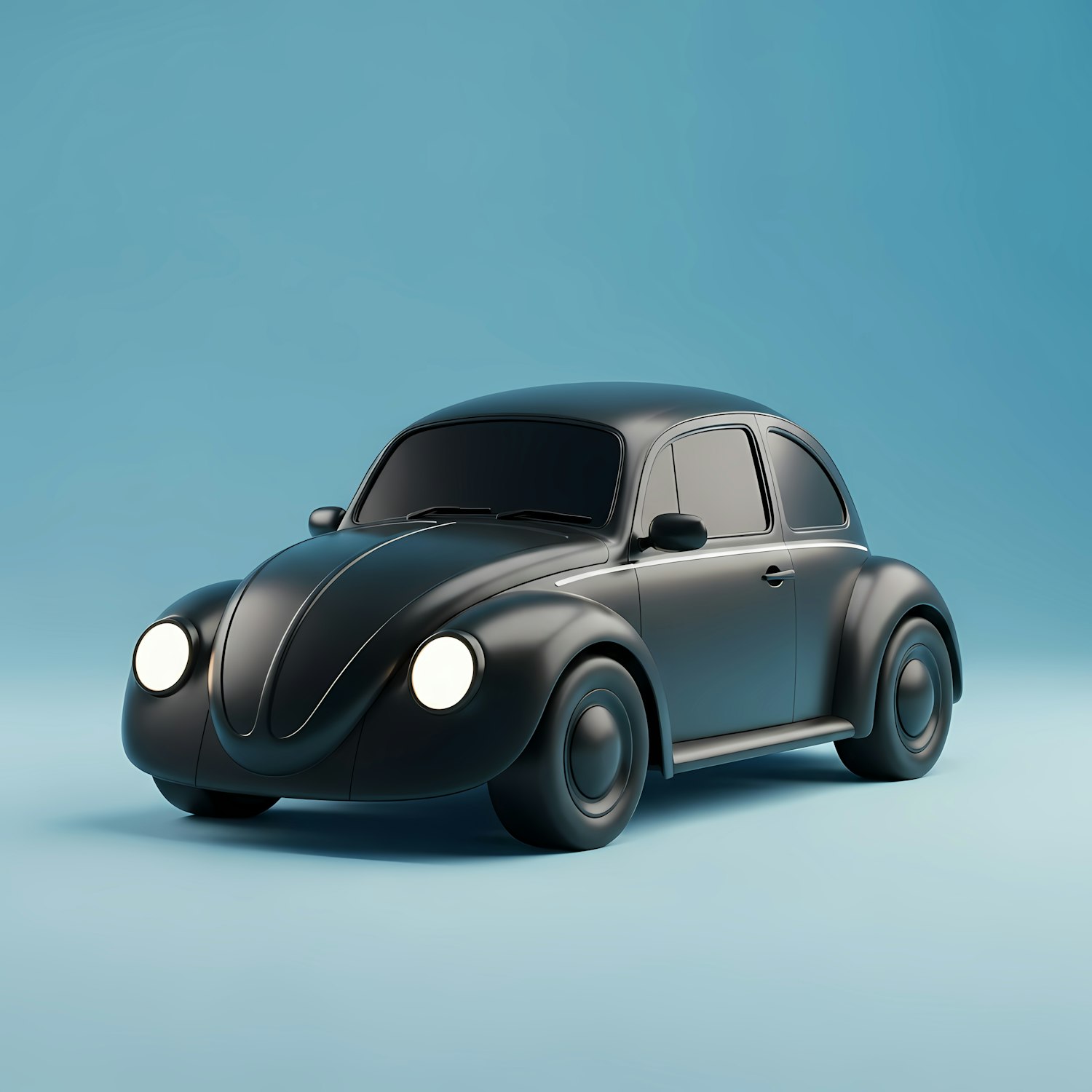 A stylish black vintage car with illuminated headlights on a gradient blue background, showcasing a sleek and polished design.