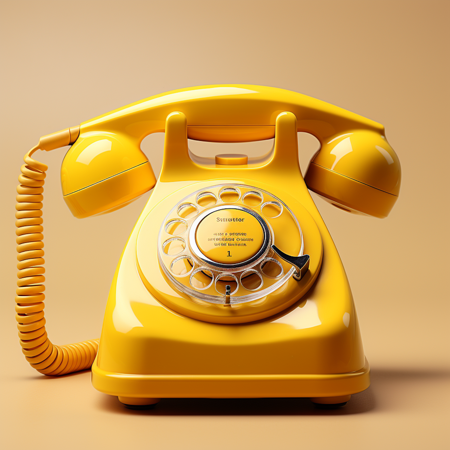 Bright yellow vintage rotary phone with a glossy finish against a matching background, showcasing retro design and bold color.