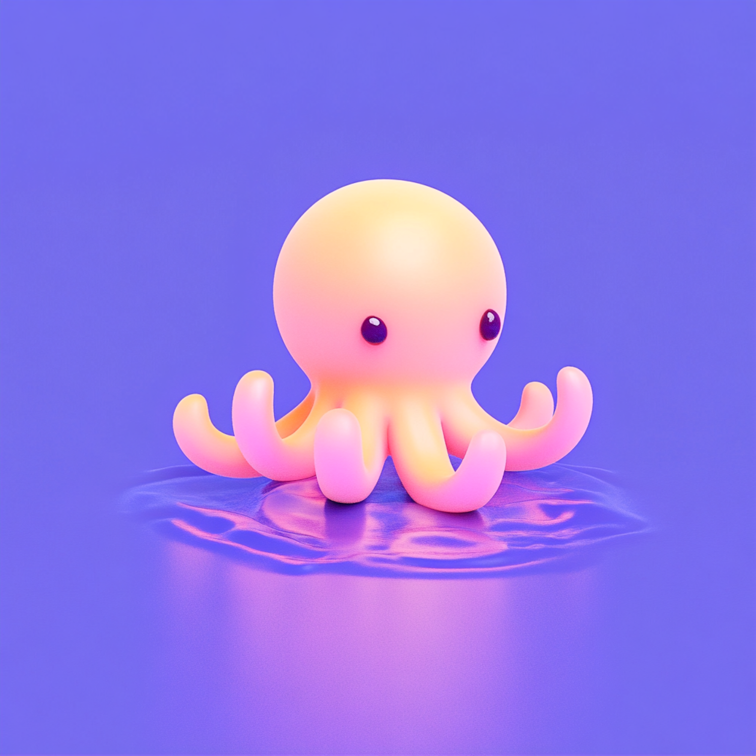 Adorable cartoon octopus with pastel colors on a purple background, featuring a cute expression and reflective surface.