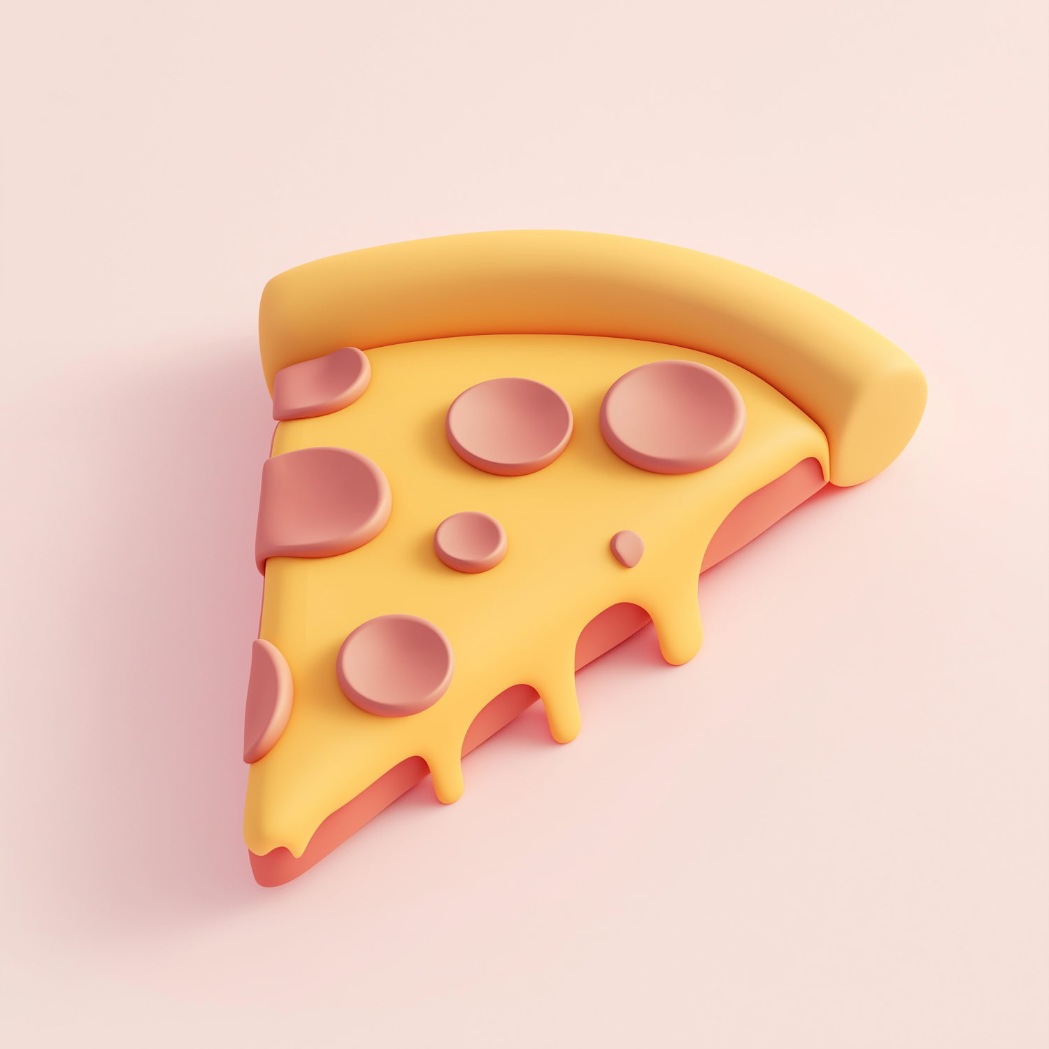 A fun 3D illustration of a pizza slice with gooey cheese and pepperoni, set against a pastel pink background. Perfect for food lovers!