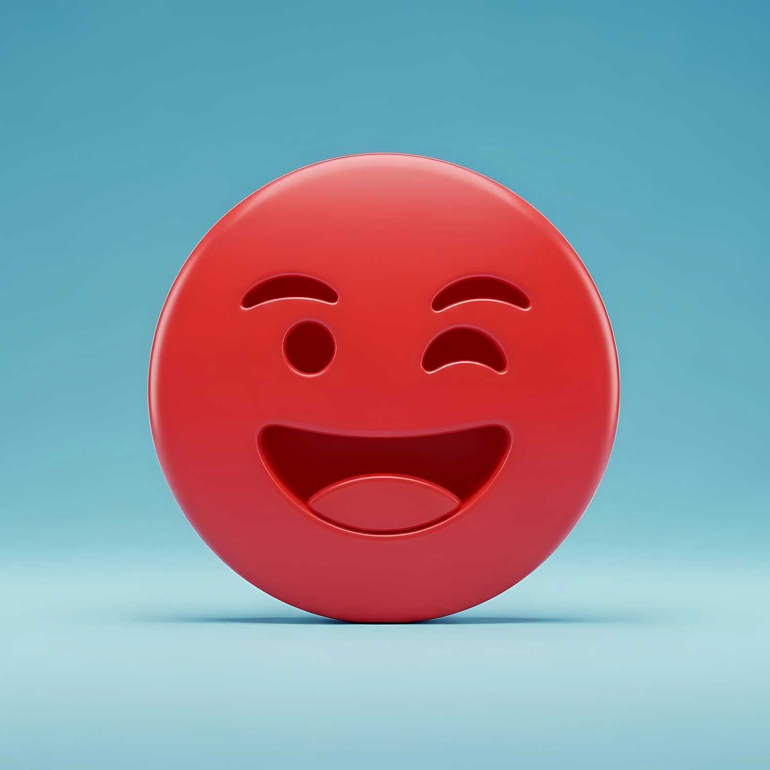 A vibrant 3D red emoji with a winking smile, set against a clean blue gradient background. Fun and playful design!
