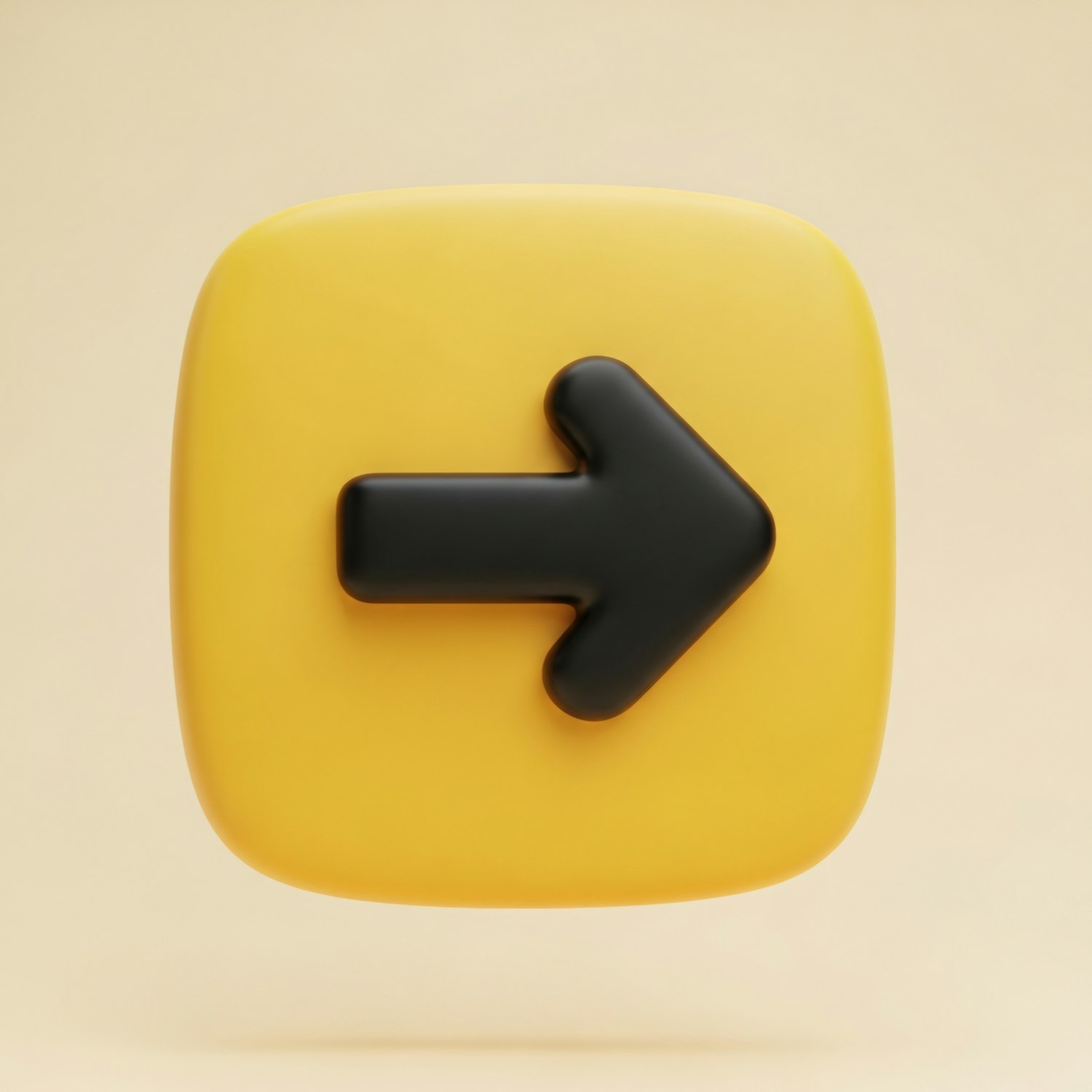A 3D-rendered yellow button with a black right-pointing arrow, set against a soft beige background, perfect for UI or design projects.