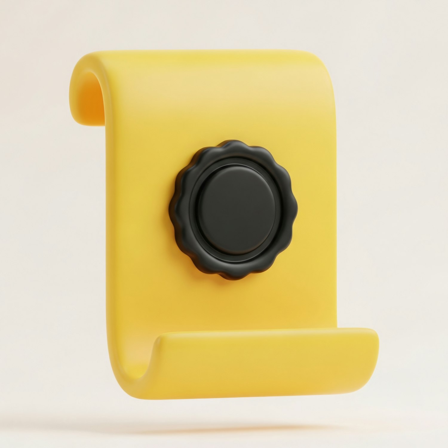 A sleek yellow curved object with a black circular detail, showcasing a modern and minimalistic design against a neutral background.