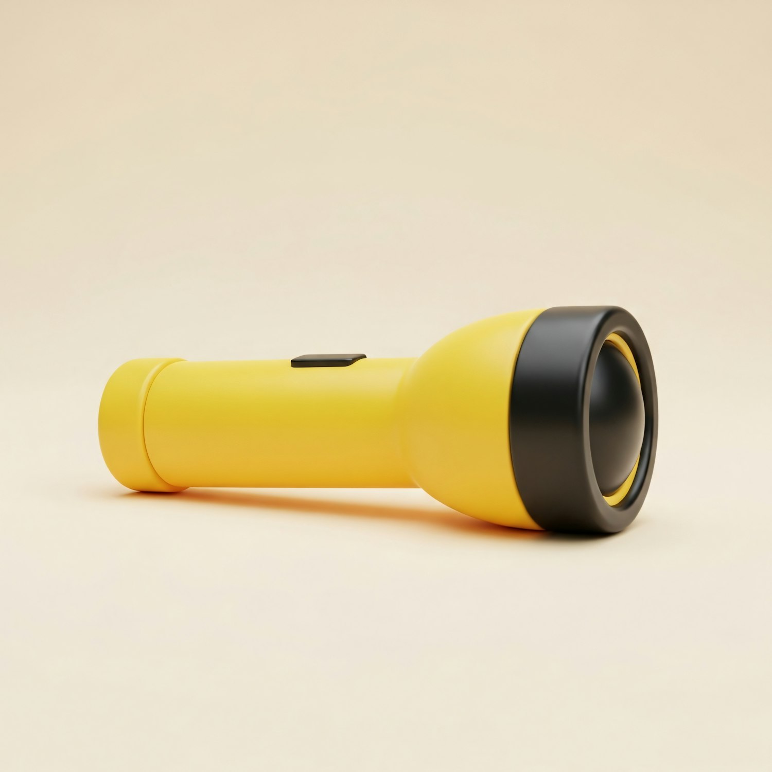 A sleek yellow flashlight with a black lens cap, resting on a neutral beige surface, showcasing its modern and minimalistic design.