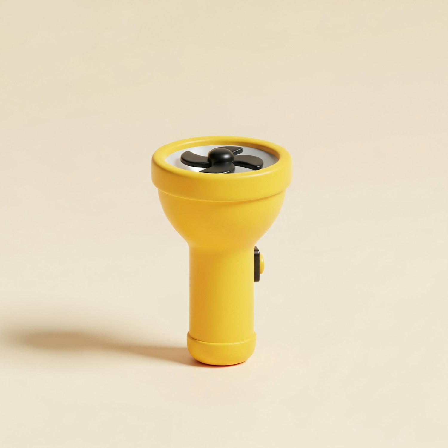 A sleek yellow handheld device with a black fan component, set against a neutral beige background, showcasing its modern design.