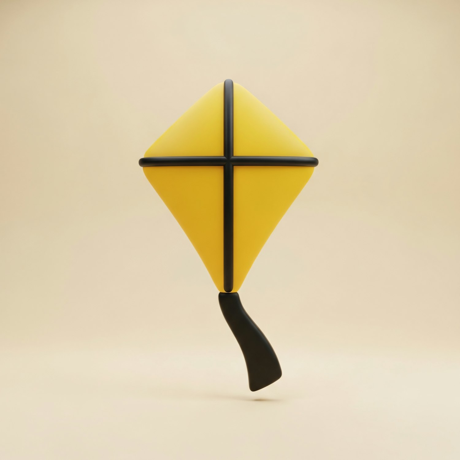 A sleek 3D-rendered yellow kite with black accents, floating against a soft beige backdrop, showcasing modern minimalism.