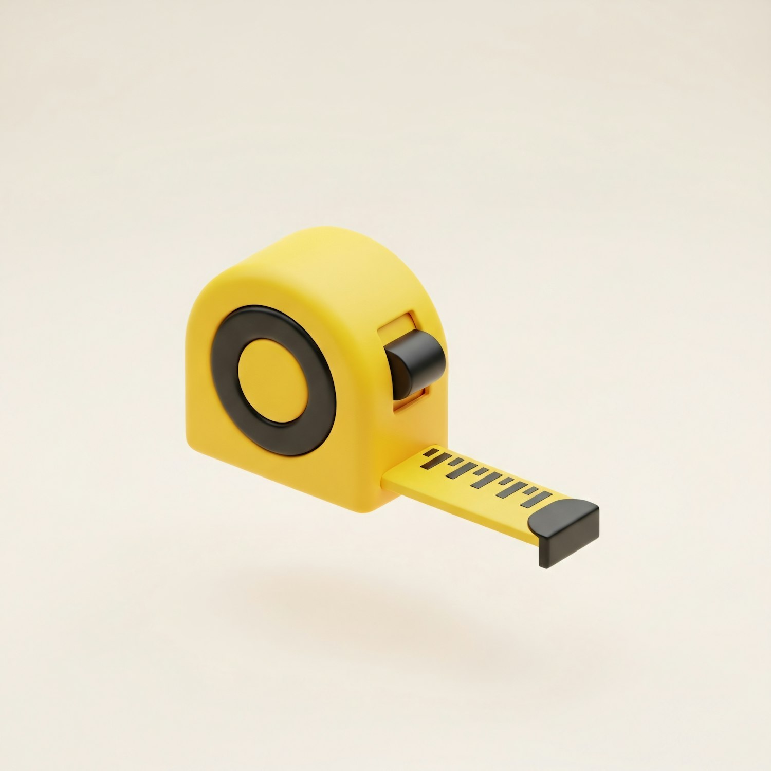 A modern yellow and black tape measure with a sleek design, partially extended, set against a neutral beige background.