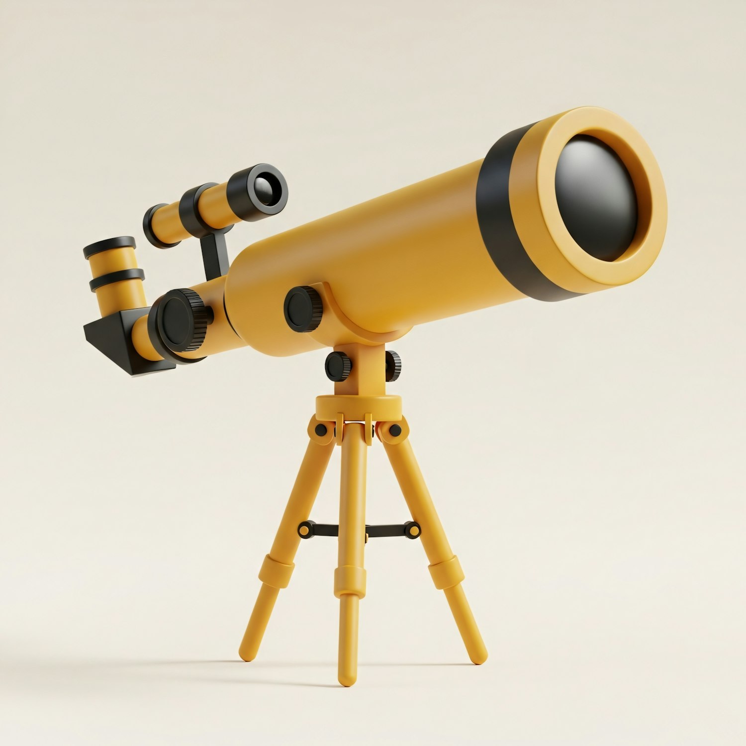 Bright yellow telescope on a matching tripod, featuring a sleek design and black accents, set against a neutral beige background.