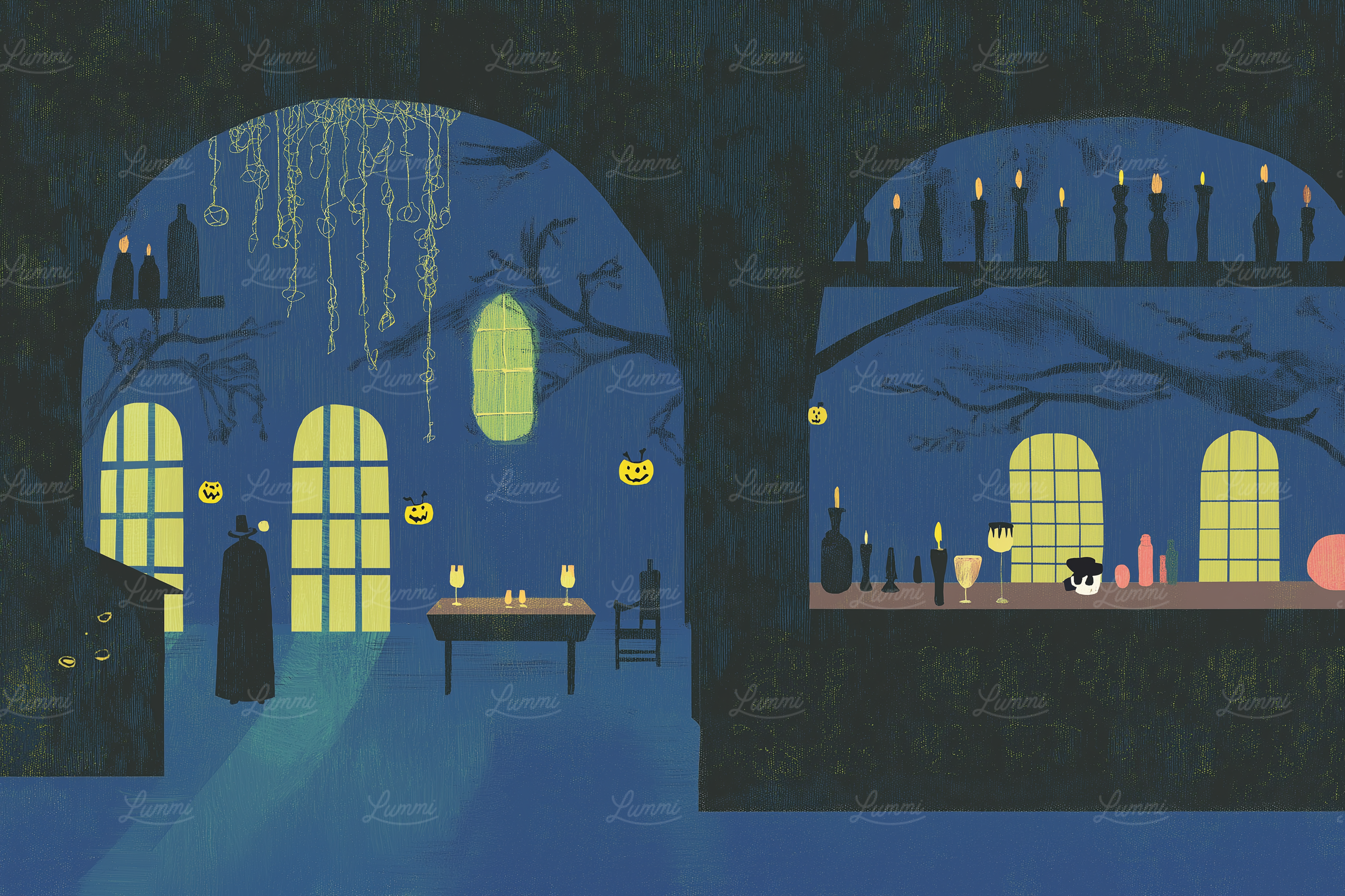 Gothic interior designs with arched details, stained glass, and dramatic lighting.