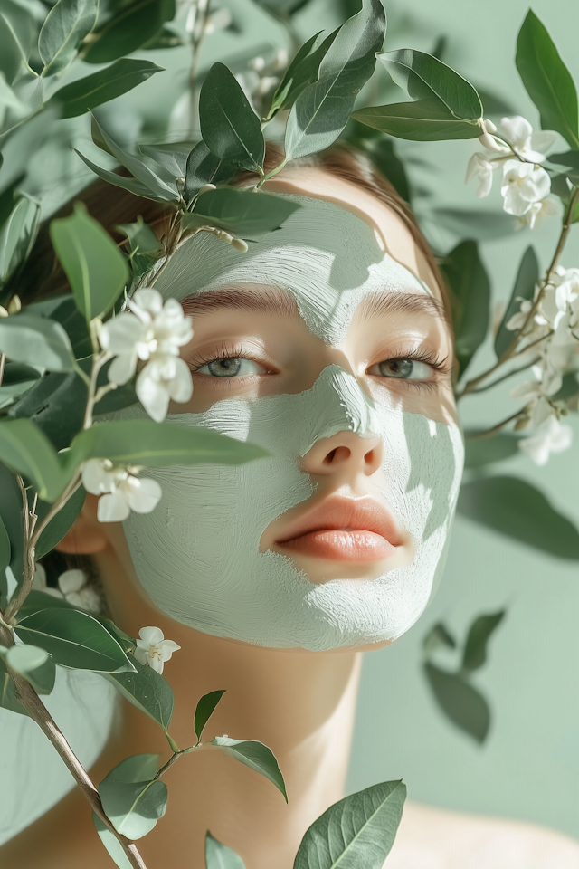 Earthy beauty scenes blending skincare with natural textures like leaves, wood, and stone.