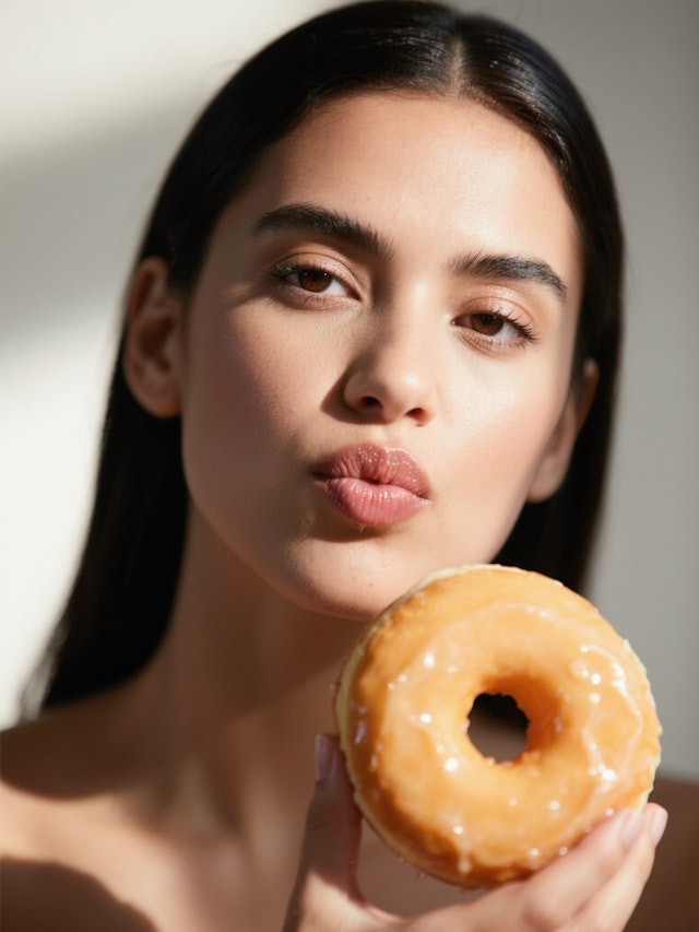 Close-ups of glossy glazed donuts shimmering with syrupy perfection.