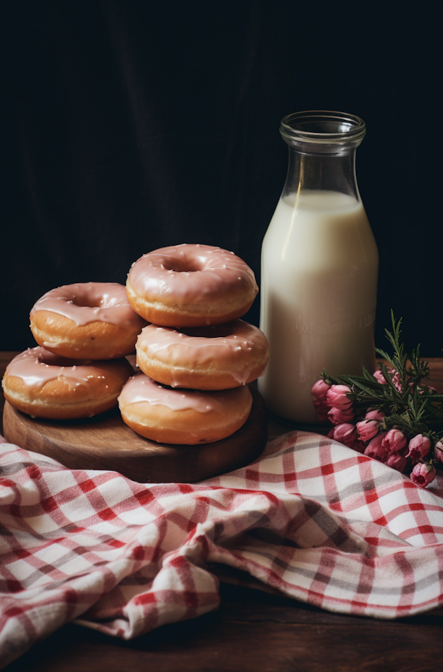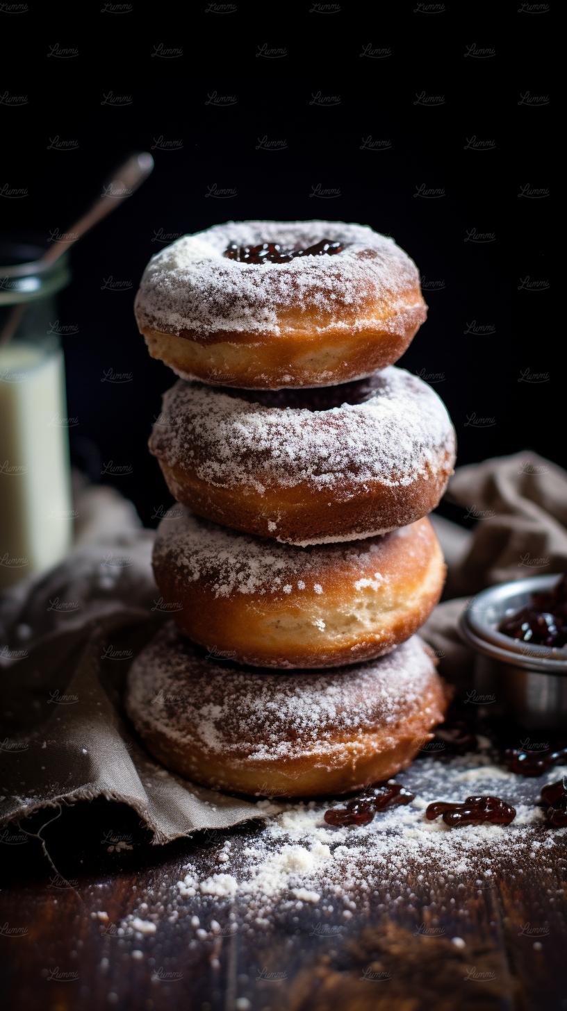 Towering stacked donuts layered with frosting, sprinkles, and sugary charm.
