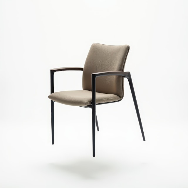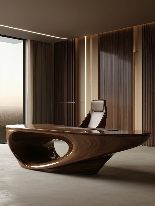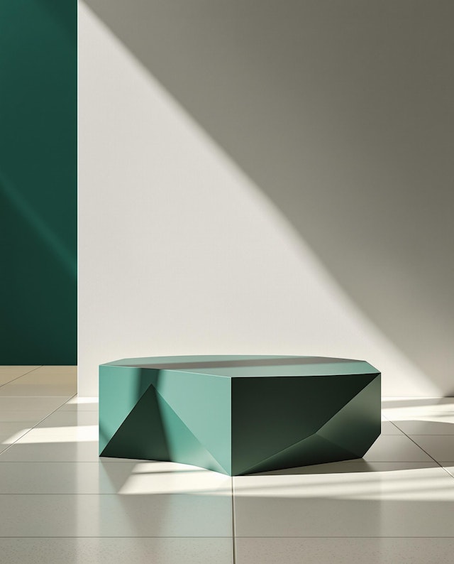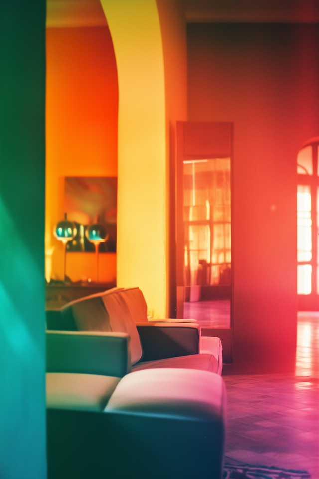 Modern furniture with sleek lines, minimalist forms, and bold color accents.