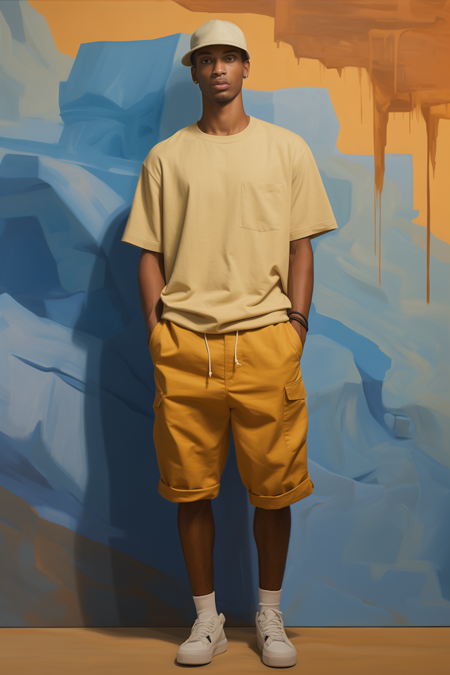 Casual normcore poses—standing still, hands in pockets, neutral expressions.