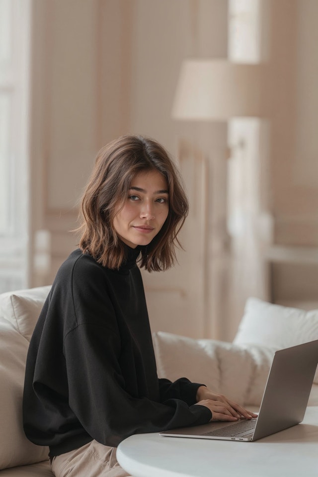 People working from home with laptops, coffee mugs, and personalized setups.