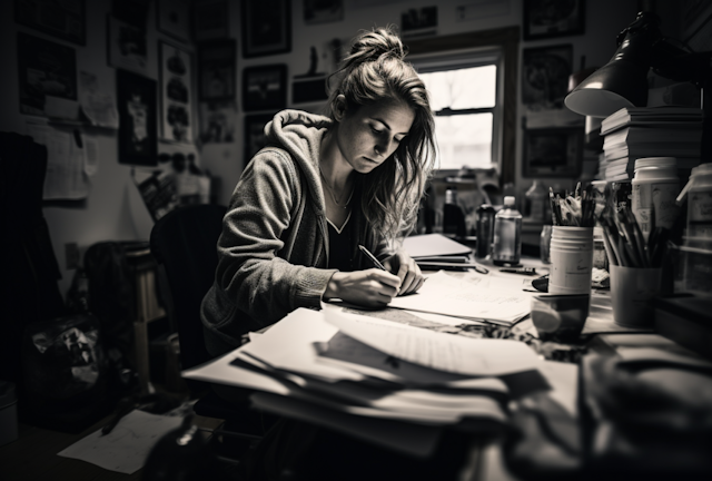 Focused thinking moments with people lost in thought, analyzing, or planning.
