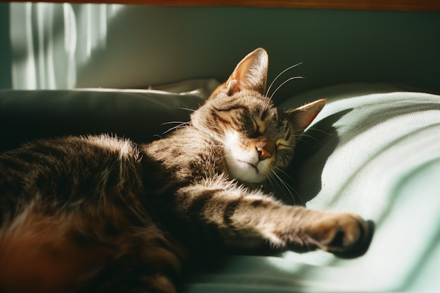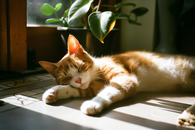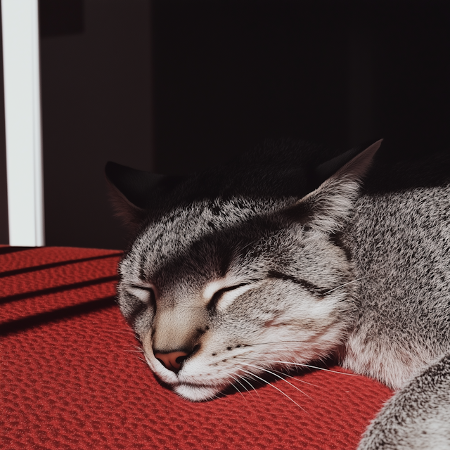 Peaceful sleeping pets curled up in cozy spots, from blankets to sunbeams.