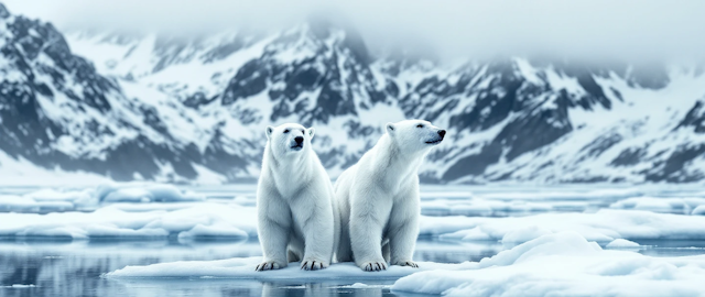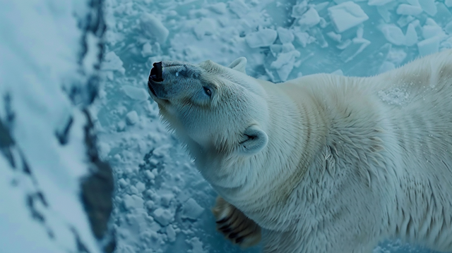 Frozen arctic wildlife like polar bears, seals, and icy seabirds.