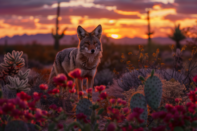 Desert wildlife adapted to dry terrain—lizards, foxes, and sparse flora.
