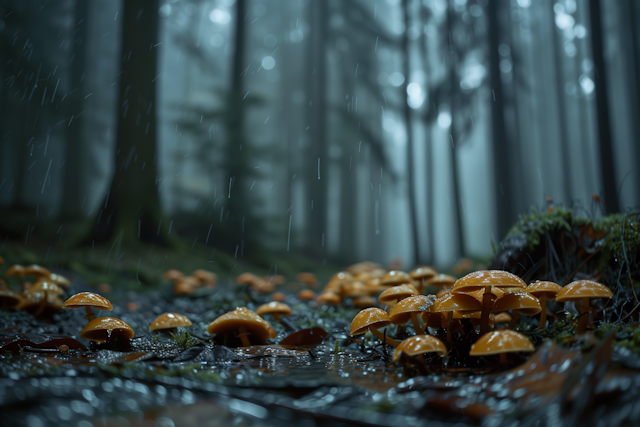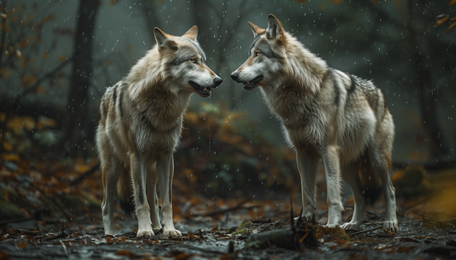 Woods wildlife including deer, foxes, owls, and rustling leaves in the shadows.