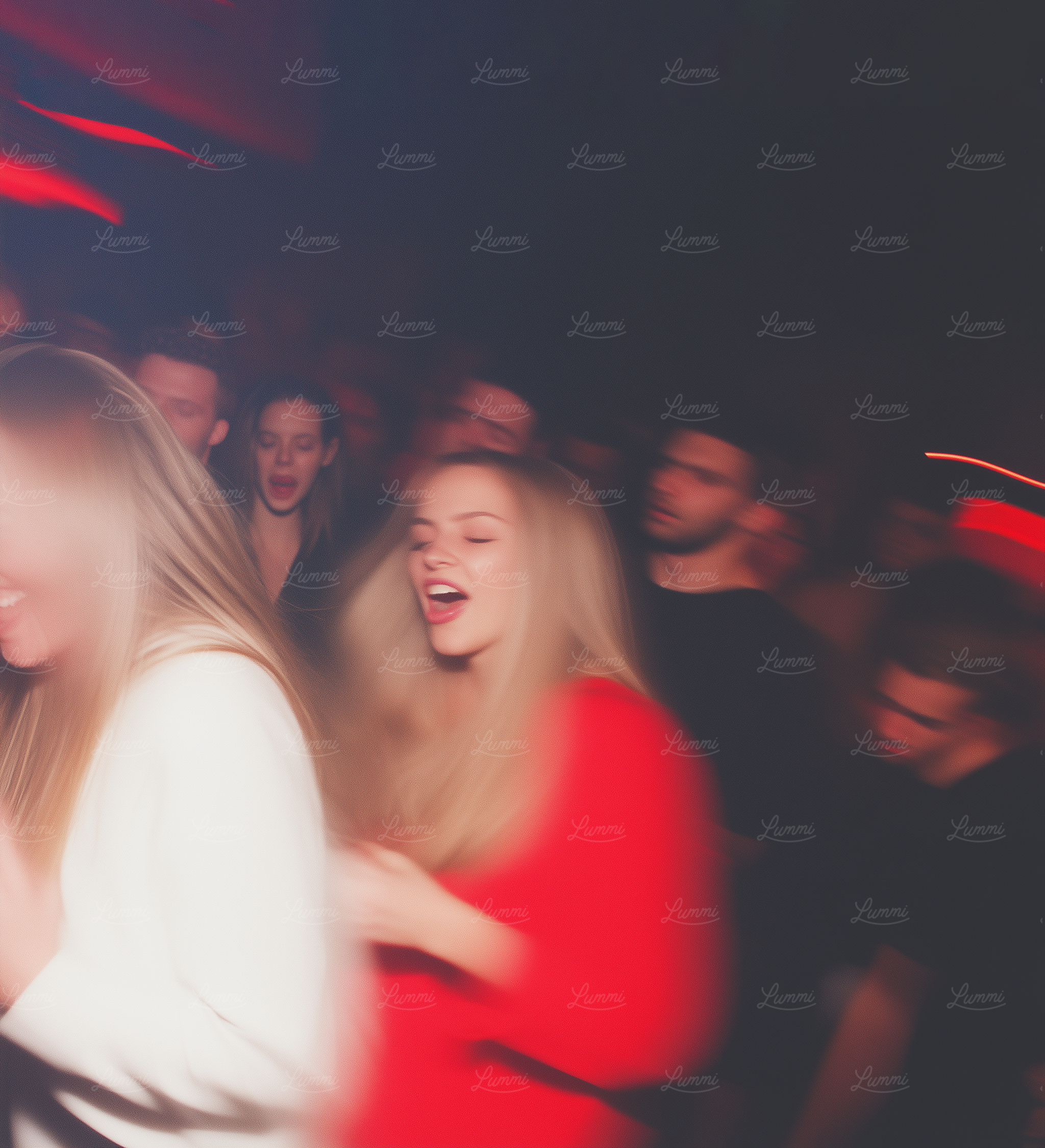 Vibrant nightclub party scenes featuring diverse young adults dancing, laughing, and celebrating under neon lights. Perfect for editorial, fashion, or lifestyle content capturing high-energy nightlife, youth culture, and dynamic social moments.