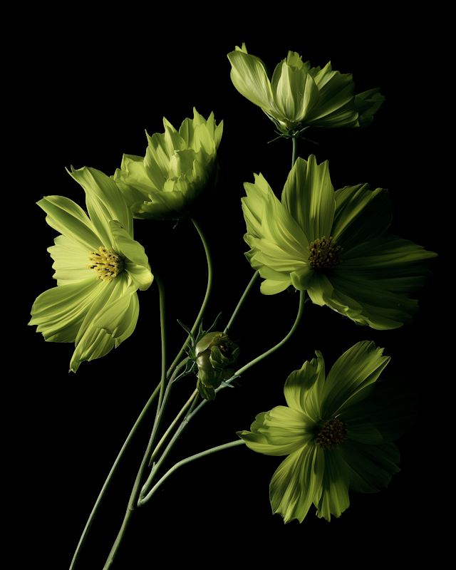 Green Flowers on Black