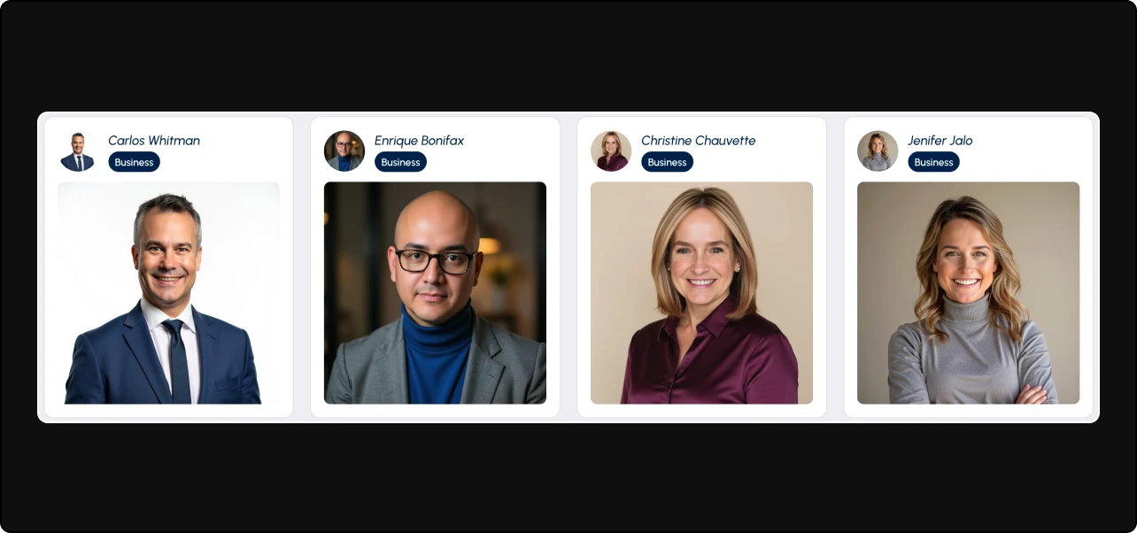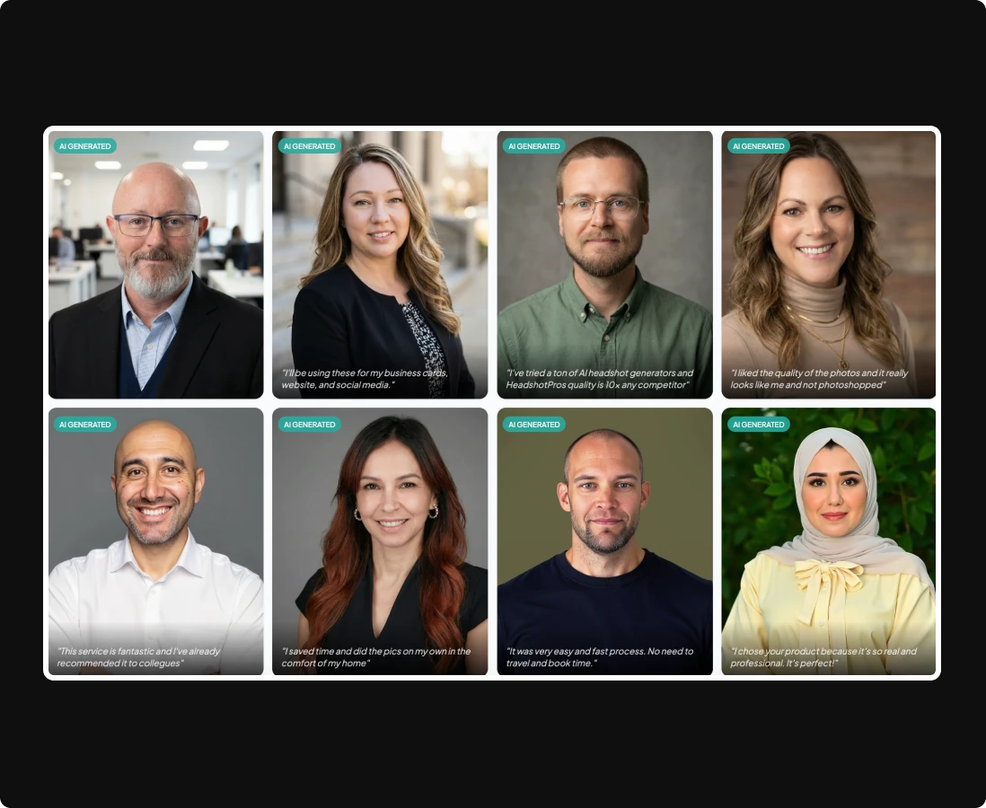 Many businesses use HeadshotPro for team directories because they receive matching lighting, consistent framing, and cohesive styling across dozens of employees.