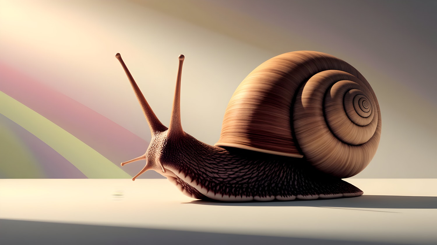 A stunning 3D rendering of a snail with a textured shell and body, set against a pastel gradient background. Perfect for nature lovers.