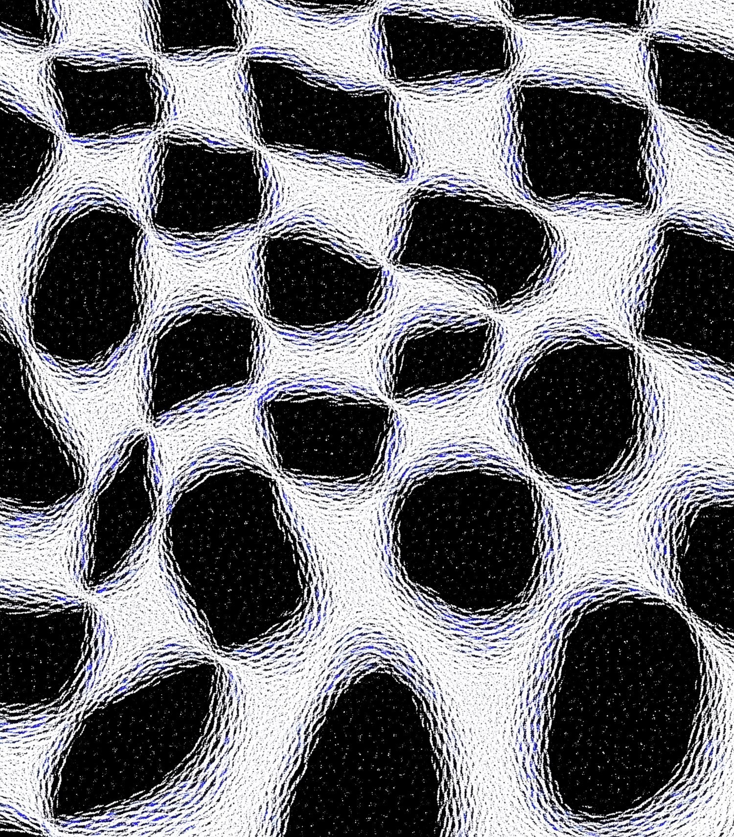 Abstract wavy grid pattern with black and white checkerboard effect and textured lines, creating a dynamic optical illusion.