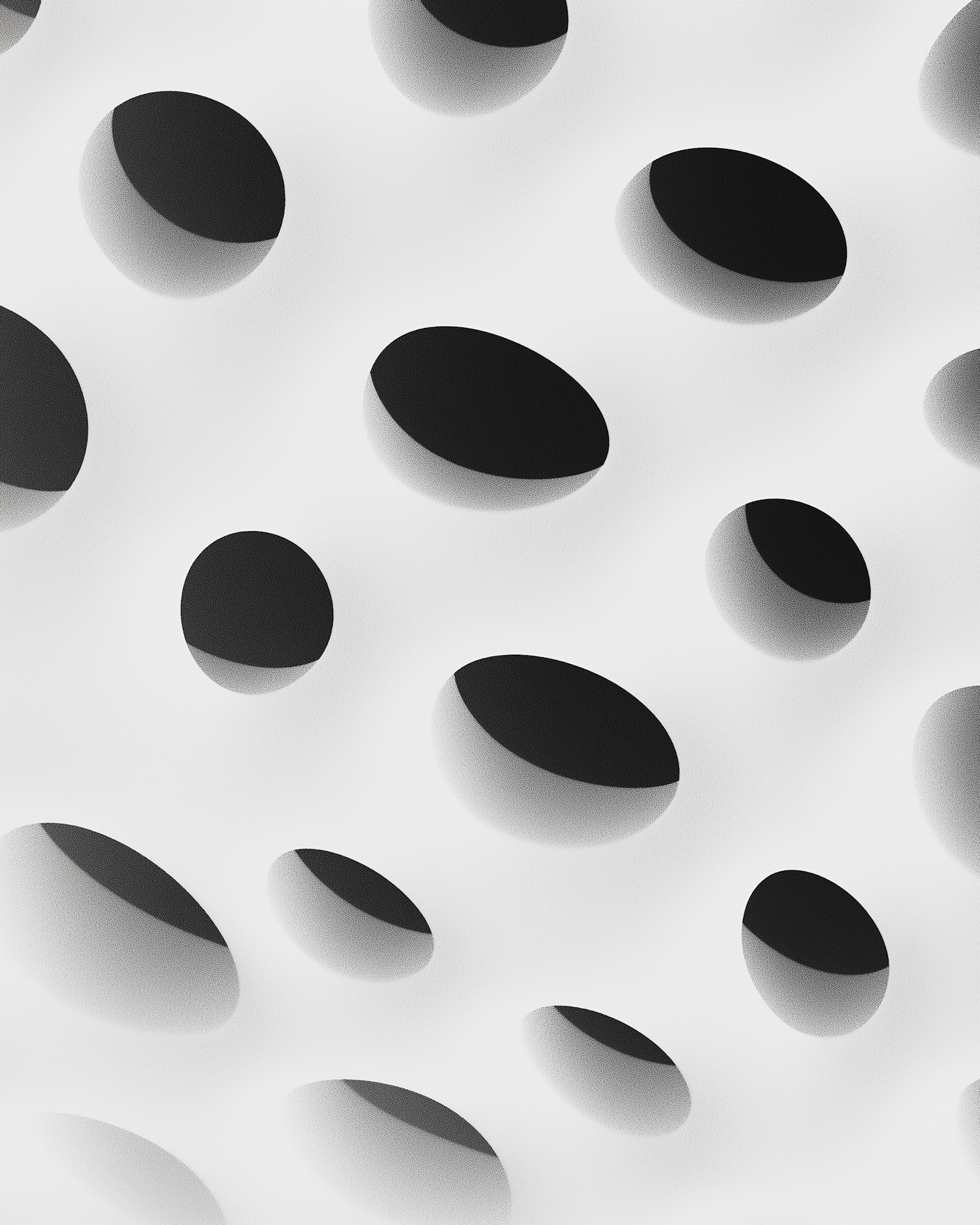 Abstract black ovals on a white background create a dynamic, three-dimensional visual effect with a modern, minimalistic design.