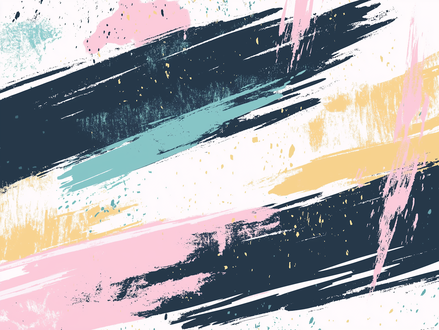 Abstract brushstroke art with navy, pink, teal, and mustard on white. Dynamic textures and splatters create a vibrant, modern look.