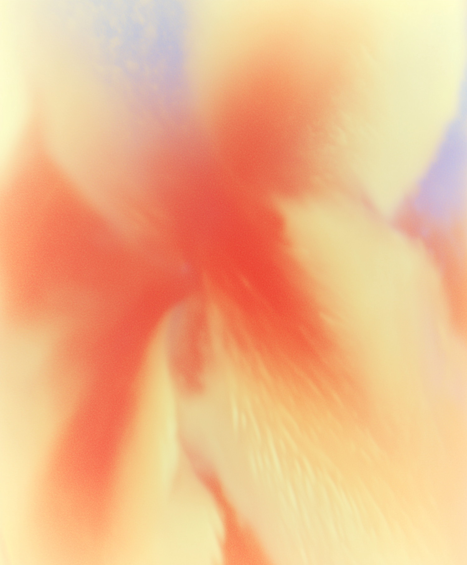 Abstract blend of warm red, orange, and yellow tones with hints of blue, creating a dreamy and fluid gradient effect.