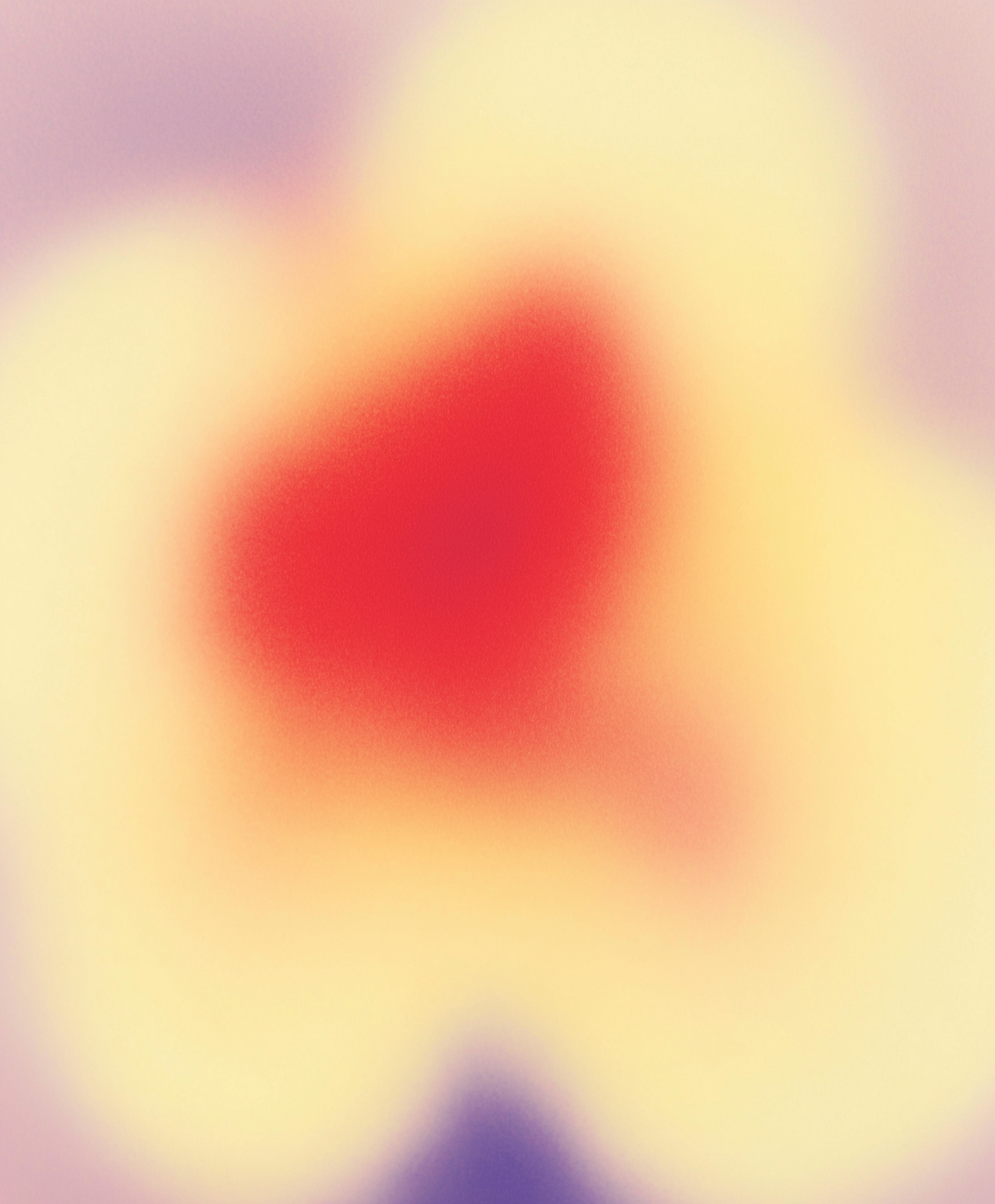 Abstract blurred image with a red center surrounded by yellow and purple gradients, creating a soft and dreamy visual effect.