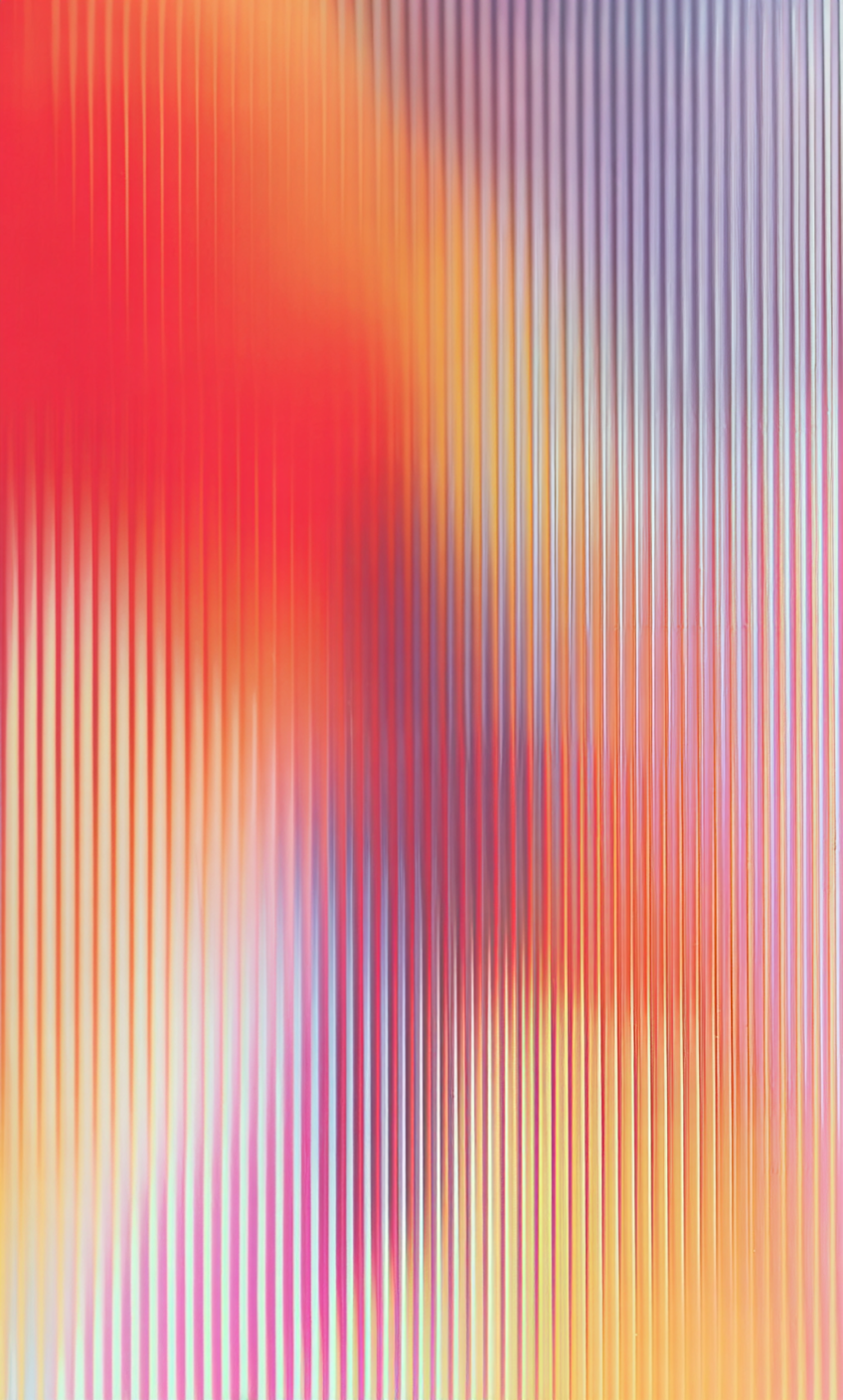 Vibrant abstract image with vertical linear patterns and a gradient of warm and cool hues blending seamlessly.