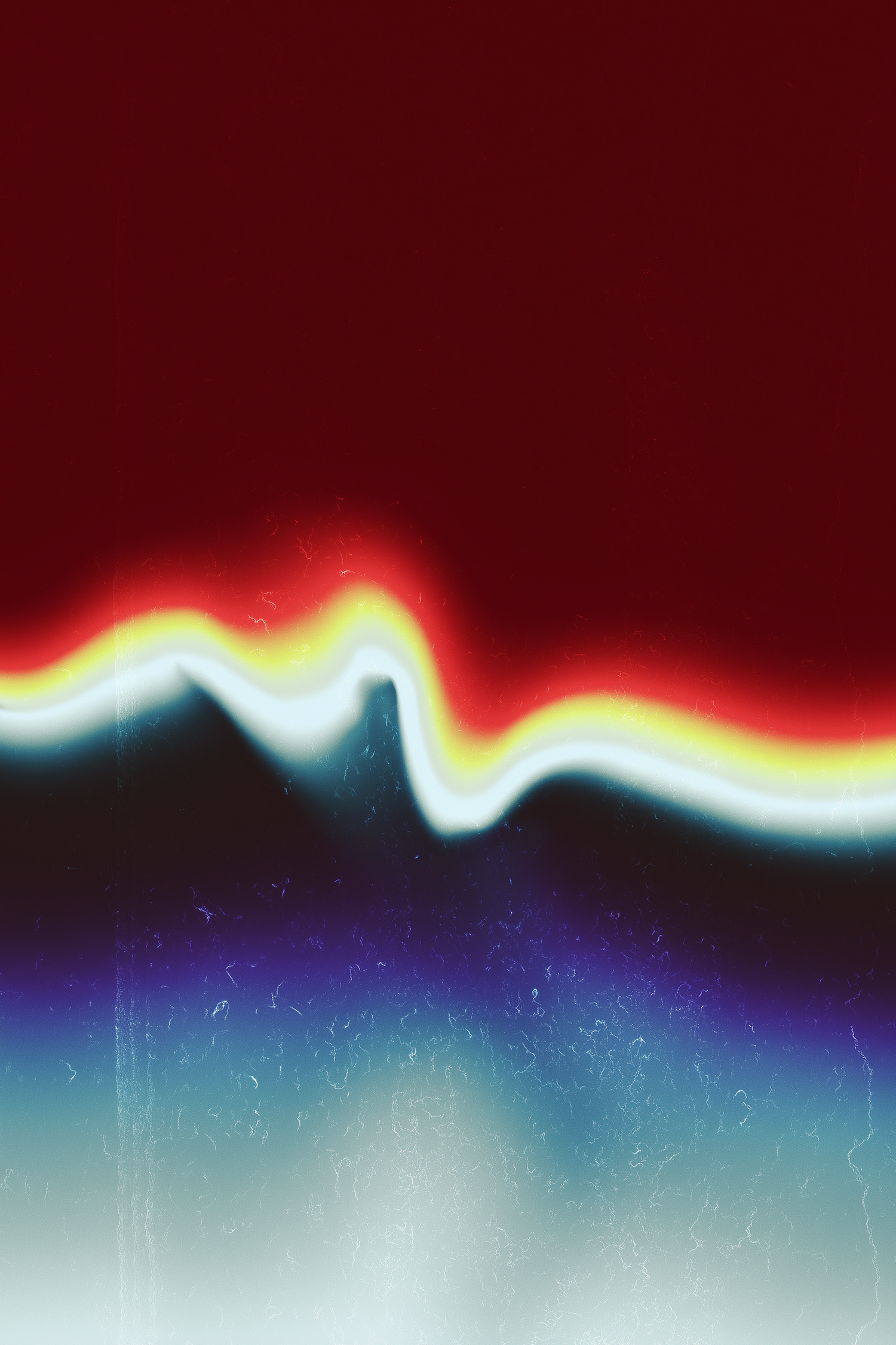 Abstract art with a glowing wavy line dividing red, yellow, blue, and purple tones, creating a dynamic and textured visual effect.