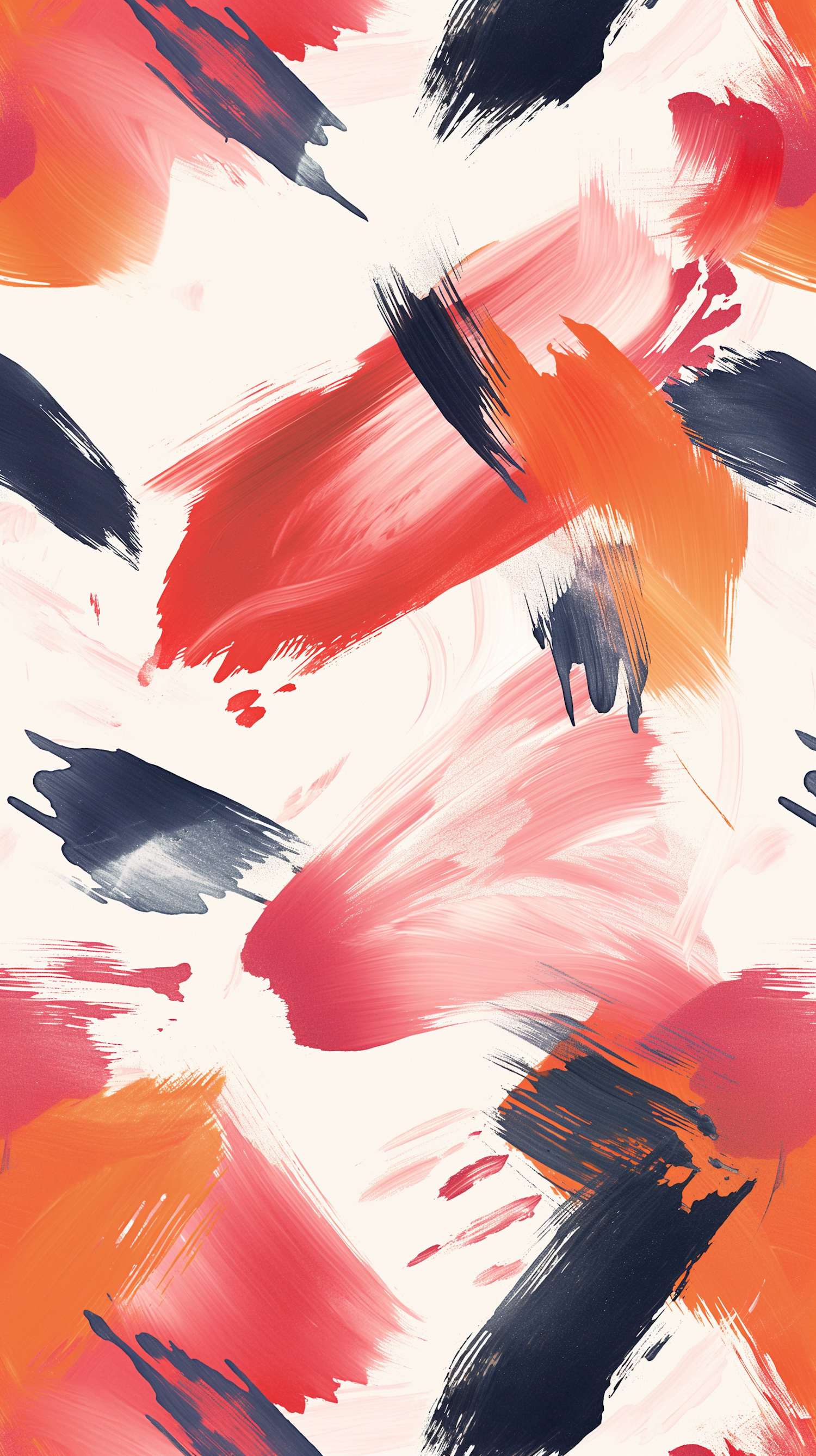 Abstract brushstroke art with vibrant reds, blues, and oranges on a light background, creating dynamic movement and energy.