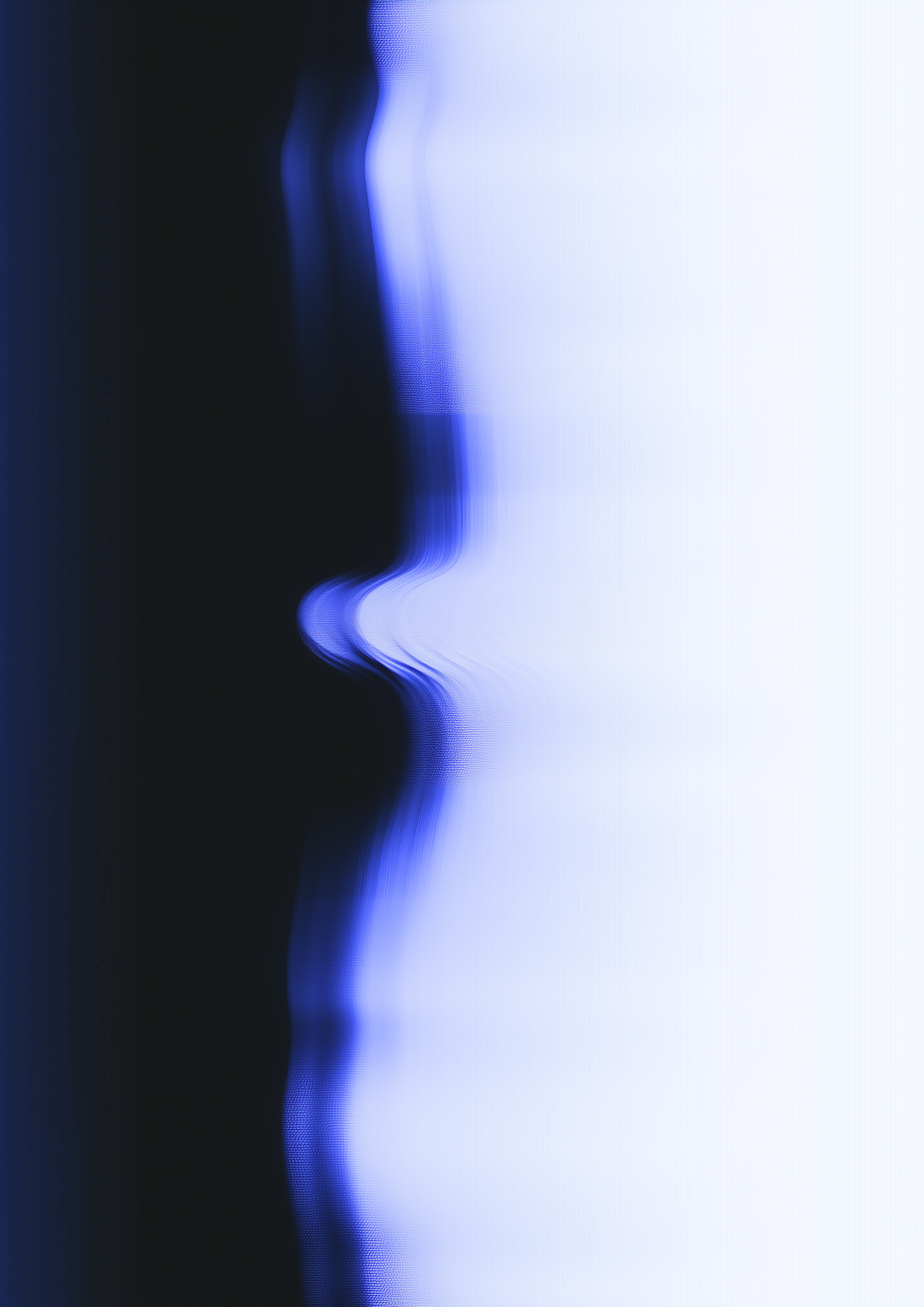 Abstract digital art with a gradient from dark blue to light, featuring a wavy, distorted line creating a dynamic visual effect.