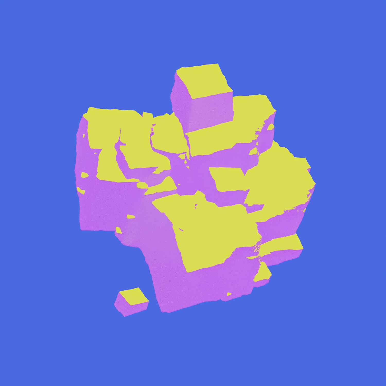 Abstract cubes in vibrant yellow and pink on a bold blue background, creating a striking and modern digital art piece.