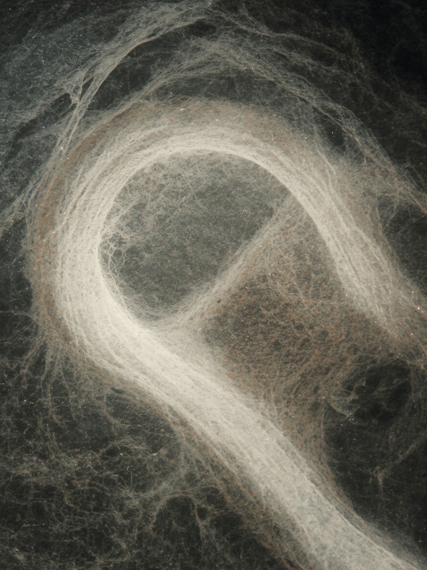 Abstract image of swirling, fibrous textures in muted tones, creating a dynamic and organic visual effect.